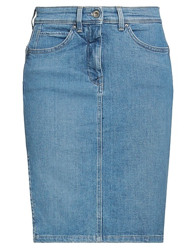 pencil skirt, denim, faded, solid color, brand logo, medium wash, unlined, 1 button, zipper fastening, side slit, multipockets, stretch, machine wash or dry clean, do not bleach, do not tumble dry