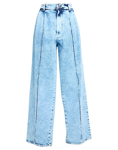 wide-leg jeans, denim, solid color, brand logo, medium wash, high waisted, regular fit, zipper fastening, 1 button, multipockets, machine wash or dry clean, do not bleach, do not tumble dry