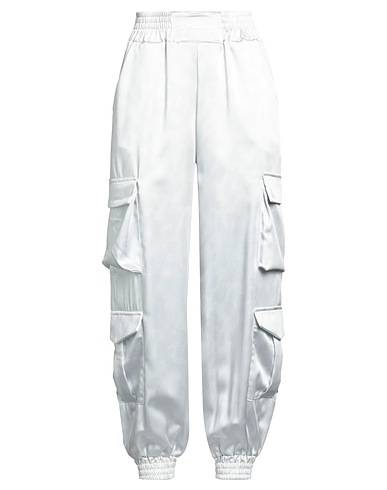 cargo pants, satin, stretchy fabric, solid color, brand logo, high waisted, relaxed fit, multipockets, hand wash, do not bleach, do not tumble dry, do not iron