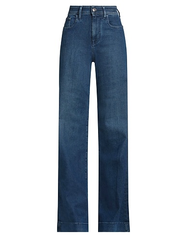flared jeans, denim, solid color, brand logo, medium wash, high waisted, belt loops, regular fit, zipper fastening, 1 button, multipockets, stretch, machine wash, do not bleach, do not tumble dry