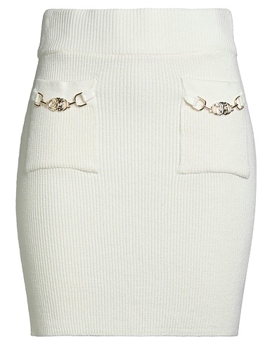 pencil skirt, knitted, medium-weight knit, solid color with appliqués, brand logo, embellished, elasticized waist, patch pockets, hand wash or dry clean, do not bleach, do not tumble dry