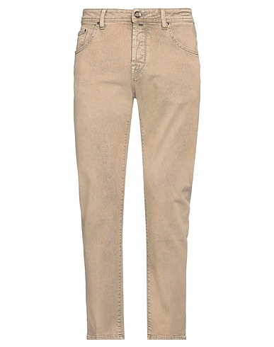 tapered jeans, denim, stretchy fabric, solid color, brand logo, leather trims, colored wash, mid rise, belt loops, regular fit, button fastenings, five pockets, machine wash, do not bleach, do not tumble dry, contains non-textile parts of animal origin