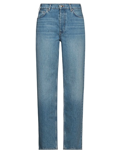 straight-leg jeans, denim, faded, solid color, brand logo, medium wash, high waisted, belt loops, regular fit, button fastenings, multipockets, machine wash, do not bleach, tumble dry