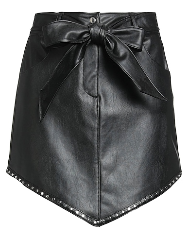 flared skirt, coated fabric, solid color with appliqués, belt, studs, belt loops, zipper fastening, snap fastenings, slit pockets, hand wash or dry clean, do not tumble dry