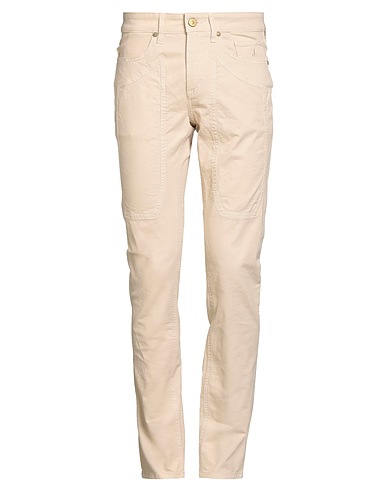 casual pants, gabardine, solid color, studs, mid rise, straight leg, regular fit, zipper fastening, button fastenings, multipockets, stretch, dry clean, do not bleach, do not tumble dry