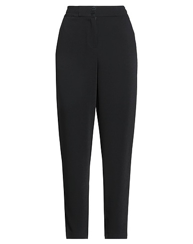 tapered pants, crepe, solid color with appliqués, side seam stripes, high waisted, elasticized waist, regular fit, zipper fastening, button fastenings, slit pockets, machine wash or dry clean, do not bleach, do not tumble dry