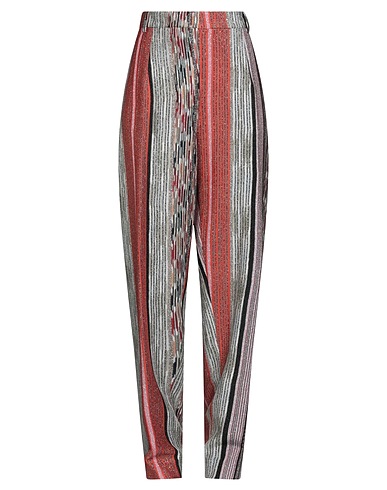 tapered pants, knitted, metallic, lightweight knit, striped, no appliqués, high waisted, regular fit, zipper fastening, 1 button, slit pockets, dry clean, do not bleach, do not tumble dry, do not iron