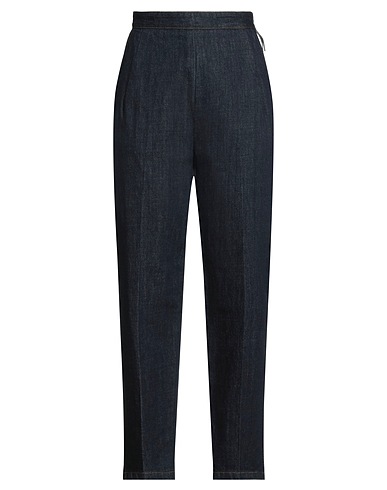 tapered jeans, denim, solid color, no appliqués, dark wash, high waisted, regular fit, zipper fastening, slit pockets, machine wash or dry clean, do not bleach, do not tumble dry, this brand runs large