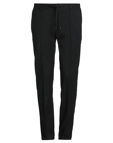 casual pants, flannel, solid color, no appliqués, mid rise, drawstring waist, tapered leg, regular fit, zipper fastening, button fastenings, slit pocket, welt pockets, stretch, dry clean, do not bleach, do not tumble dry