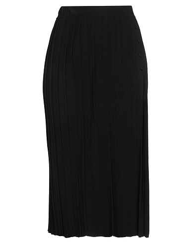 pleated skirt, knitted, lightweight knit, solid color, no appliqués, front slit, hand wash or dry clean, do not bleach, do not tumble dry