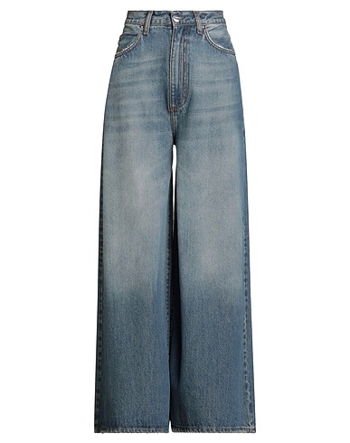 wide-leg jeans, denim, faded, solid color, brand logo, medium wash, high waisted, belt loops, regular fit, zipper fastening, 1 button, multipockets, machine wash, do not bleach, do not tumble dry