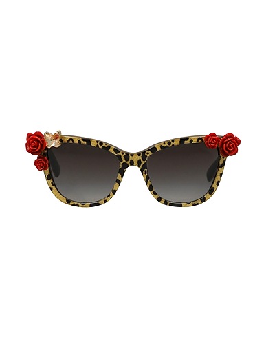 plastic frame, dark lenses, rectangular style, leopard-print, floral appliqués, glittered