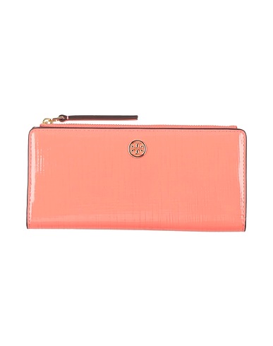 wallet, patent leather, solid color, brand logo, leather lining, snap fastenings, card slots, external pocket with zip, contains non-textile parts of animal origin