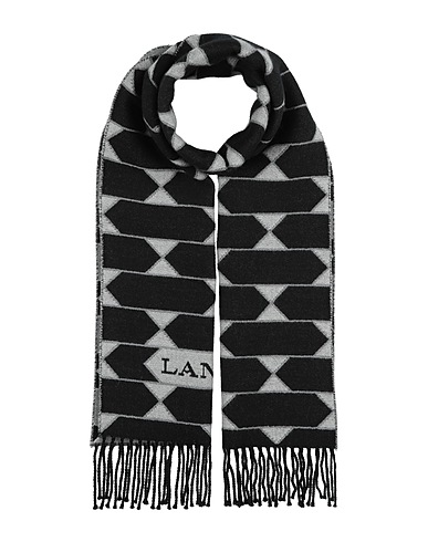 scarf, jacquard, geometric-print, brand logo, fringes, dry clean, do not bleach, do not tumble dry