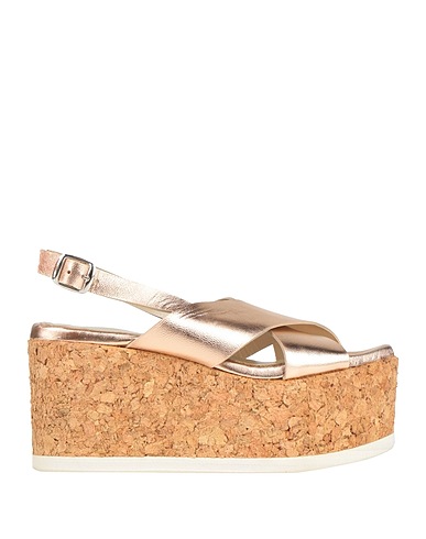 slingback sandals, leather, metallic, solid color, no appliqués, buckle fastening, round toe, wedge, leather lining, rubber sole, contains non-textile parts of animal origin