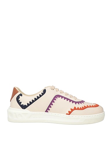 low-top sneakers, leather, solid color with appliqués, embroidered, leather lining, lace-up, round toe, rubber cleated sole, contains non-textile parts of animal origin