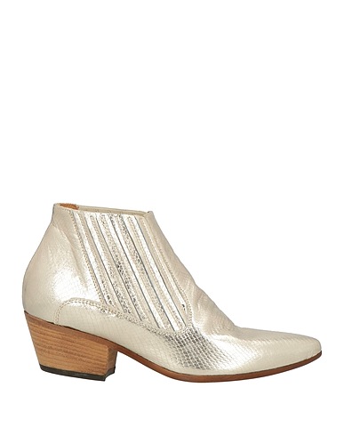 cowboy ankle boots, leather, metallic, snakeskin-print, no appliqués, leather lining, elasticized inserts, pointed toe, cuban heel, rubber sole, contains non-textile parts of animal origin