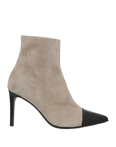 ankle boots, suede, two-tone, patent-leather trims, leather lining, zipper fastening, pointed toe, stiletto heel, leather/rubber sole, contains non-textile parts of animal origin, large sized
