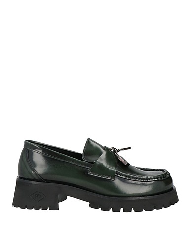 chunky loafers, glossed-leather, embellished, solid color with appliqués, leather lining, round toe, square heel, lug sole, contains non-textile parts of animal origin