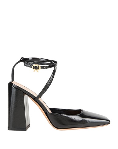 pumps, leather, solid color, no appliqués, leather lining, buckle-fastening ankle strap, square toe, square heel, covered heel, leather sole, contains non-textile parts of animal origin