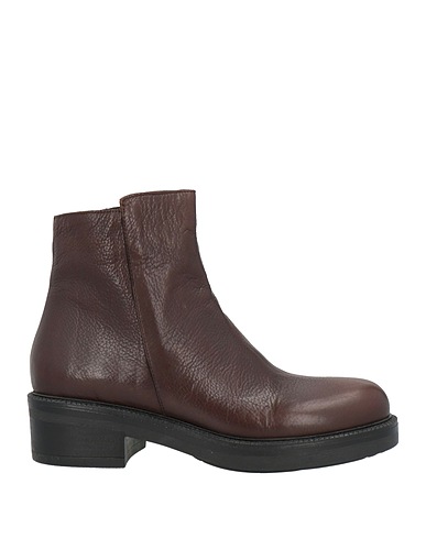 ankle boots, pebbled-leather, solid color, no appliqués, leather lining, zipper fastening, round toe, low heel, rubber cleated sole, contains non-textile parts of animal origin
