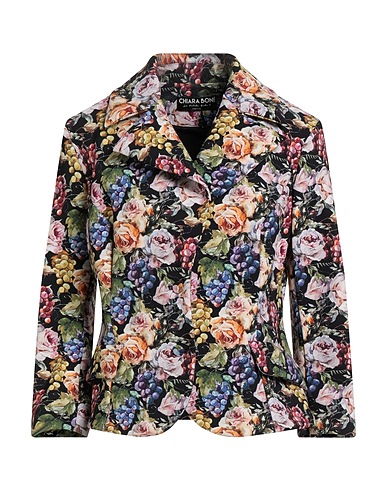 single-breasted blazer, scuba, floral-print, no appliqués, lapel collar, long sleeves, unlined, button fastenings, faux pockets, stretch, machine wash or dry clean, do not bleach, do not tumble dry