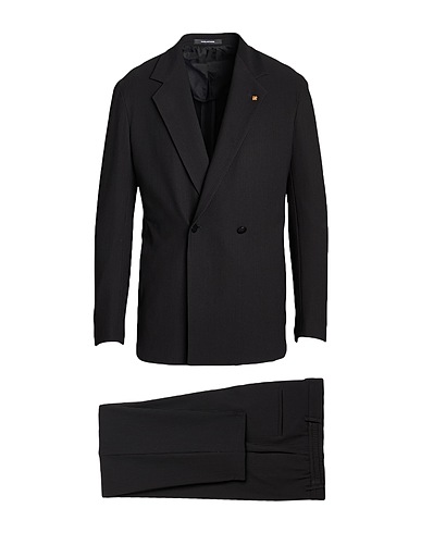 double-breasted suit, jersey, solid color, brooch, lapel collar, long sleeves, partially lined, button fastenings, multipockets, stretch, dry clean, do not bleach, do not tumble dry
