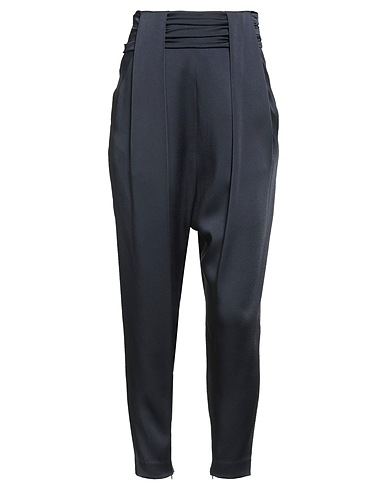 satin, basic solid colour, high waisted, comfort fit, tapered leg, frills, hook-and-bar, zip, multipockets, zips at hem, tailored
