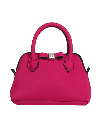 bowler bag, scuba, solid color with appliqués, brand logo, bow-detailed, zipper fastening, unlined, double handle, medium size