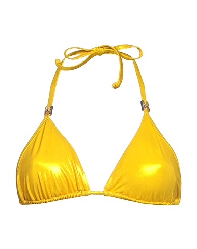 triangle bikini top, jersey, metallic, solid color, brand logo, tie fastening, fully lined, stretch