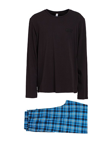 jersey, woven, brand logo, embroidered, solid color, tartan pattern, crewneck, long sleeves, multipockets, elasticized waist, pyjama set