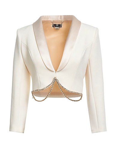 single-breasted blazer, satin, stretchy fabric, solid color with appliqués, crystals, deep neckline, long sleeves, fully lined, hook fastenings, without pockets, dry clean, do not bleach, do not tumble dry, do not iron