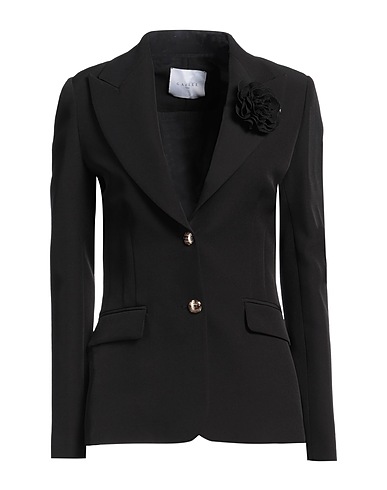 single-breasted blazer, crepe, brooch, solid color, lapel collar, long sleeves, fully lined, without pockets, stretch, dry clean, do not bleach, do not tumble dry