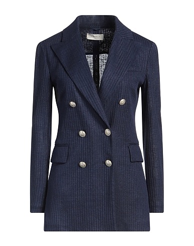 double-breasted blazer, knitted, lightweight knit, no appliqués, solid color, lapel collar, long sleeves, unlined, button fastenings, multipockets, rear slit, dry clean, do not tumble dry