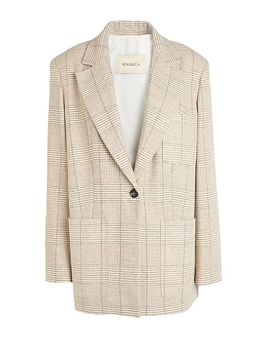 single-breasted blazer, tweed, glen plaid, no appliqués, lapel collar, long sleeves, shoulder pads, slit cuffs, fully lined, 1 button, multipockets, rear slit, dry clean, do not bleach, do not tumble dry