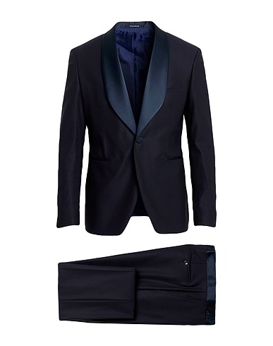 single-breasted suit, cool wool, satin, solid color, no appliqués, lapel collar, long sleeves, buttoned cuffs, fully lined, button fastenings, multipockets, rear slit, raw-cut hem, 3-piece set, dry clean, do not bleach, do not tumble dry, do not iron