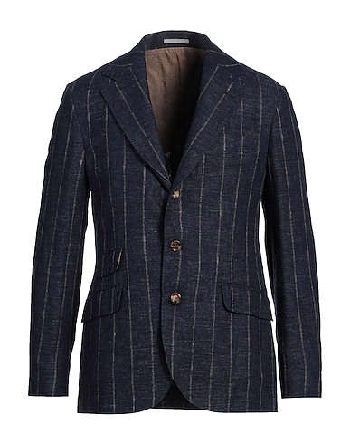 single-breasted blazer, tweed, striped, no appliqués, lapel collar, long sleeves, buttoned cuffs, partially lined, button fastenings, flap pockets, dual back vents, contains non-textile parts of animal origin, dry clean, do not bleach, do not tumble dry
