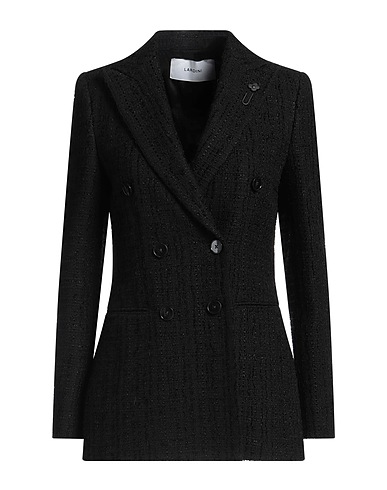 double-breasted blazer, tweed, solid color, no appliqués, lapel collar, long sleeves, fully lined, button fastenings, bellows pockets, dual back vents, dry clean, do not bleach, do not tumble dry