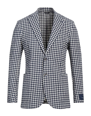 single-breasted blazer, woven, checked, no appliqués, lapel collar, long sleeves, buttoned cuffs, partially lined, button fastenings, multipockets, one chest pocket, dual back vents, dry clean, do not bleach, do not tumble dry