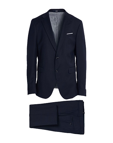 single-breasted suit, flannel, solid color, no appliqués, lapel collar, long sleeves, fully lined, button fastenings, flap pockets, dual back vents, mid rise, belt loops, stretch, dry clean, do not bleach, do not tumble dry
