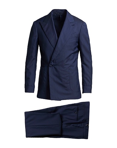 single-breasted suit, woven, striped, no appliqués, lapel collar, long sleeves, partially lined, button fastenings, multipockets, dual back vents, high waisted, dry clean, do not bleach, do not tumble dry