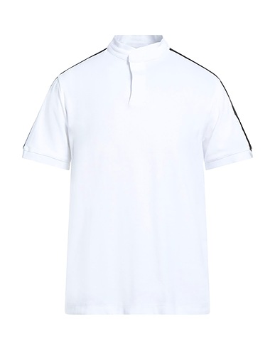 piqué, side seam stripes, brand logo, solid colour, mandarin collar, short sleeves, snap buttons fastening, no pockets