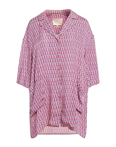 oversized shirt, satin, multicolour, no appliqués, lapel collar, short sleeves, button fastenings