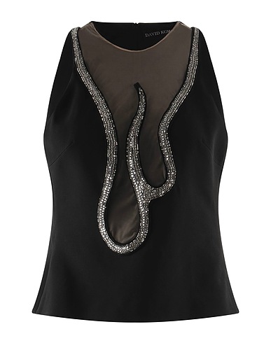 top, crepe, tulle, plain colour with appliqués, crystals, crewneck, sleeveless, zip fastening, stretch