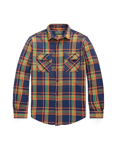 tweed, no appliqués, tartan pattern, classic collar, long sleeves, button closing, multipockets, large sized