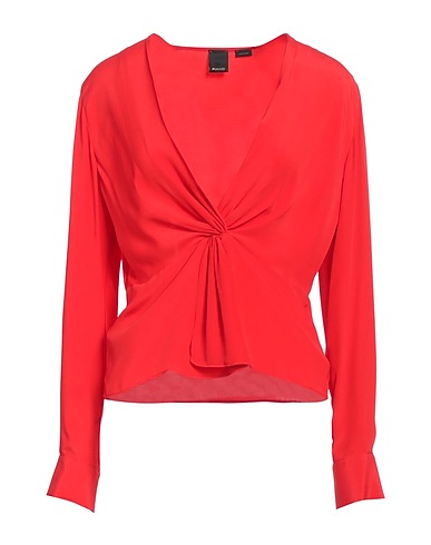 top, crepe, plain colour, no appliqués, deep neckline, long sleeves, buttoned cuffs, zip fastening
