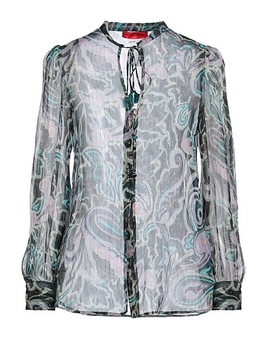 chiffon, lamé, no appliqués, multicolour, crewneck, long sleeves, buttoned cuffs, button fastenings, self-tie closure, no pockets, dry clean, do not tumble dry, do not bleach, shirt