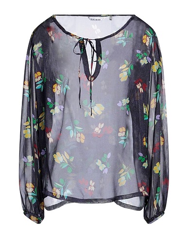 chiffon, no appliqués, floral-print, crewneck, long sleeves, self-tie closure, bohemian blouse, small sized