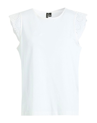 jersey, broderie anglaise, no appliqués, plain colour, crewneck, short sleeves, cap sleeves, machine wash, do not bleach, do not tumble dry, top