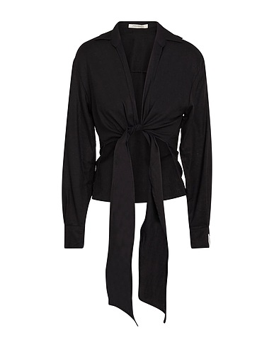 shirt, woven, plain colour, brand logo, deep neckline, long sleeves, tie fastening, machine wash or dry clean, do not bleach, do not tumble dry